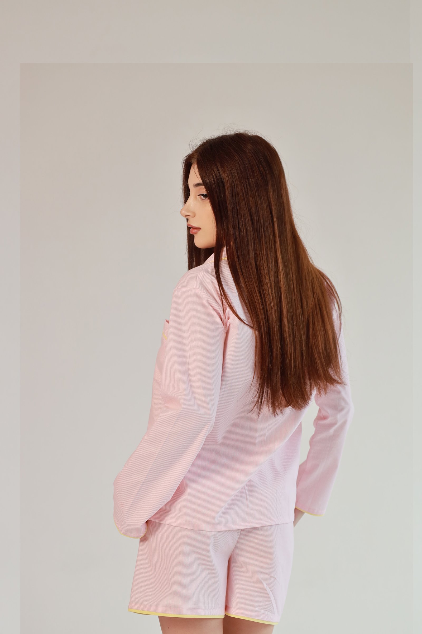 დამზადებულია 100% ბამბის ნატურალური ქსოვილით – რბილი, კომფორტული და სუნთქვადი, იდეალურია როგორც დასვენებისთვის, ისე ყოველდღიური სიმყუდროვისთვის.